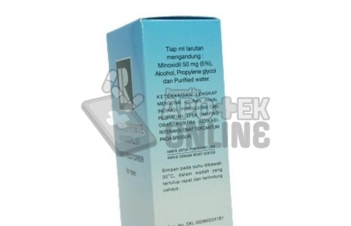 | Perhatian Khusus | • Hanya dengan resep dokter. • Hindari kontak dengan mata, luka terbuka, atau membran mukosa. • Tidak untuk pasien dengan riwayat hipersensitivitas terhadap Minoxidil. |