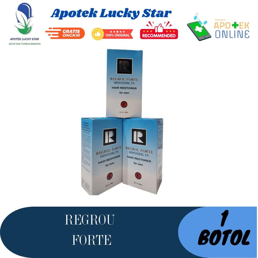 | Deskripsi | Regrou Forte Solution mengandung Minoxidil 5% untuk mengatasi alopecia androgenetika (kebotakan pola pria/wanita). Obat ini bekerja sebagai vasodilator, meningkatkan aliran darah ke folikel rambut dan merangsang pertumbuhan rambut di area kulit kepala yang menipis. Harus digunakan sesuai anjuran dokter. |