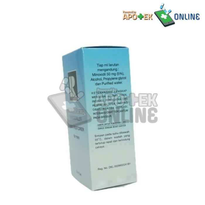| Perhatian Khusus | • Hanya dengan resep dokter. • Hindari kontak dengan mata, luka terbuka, atau membran mukosa. • Tidak untuk pasien dengan riwayat hipersensitivitas terhadap Minoxidil. |