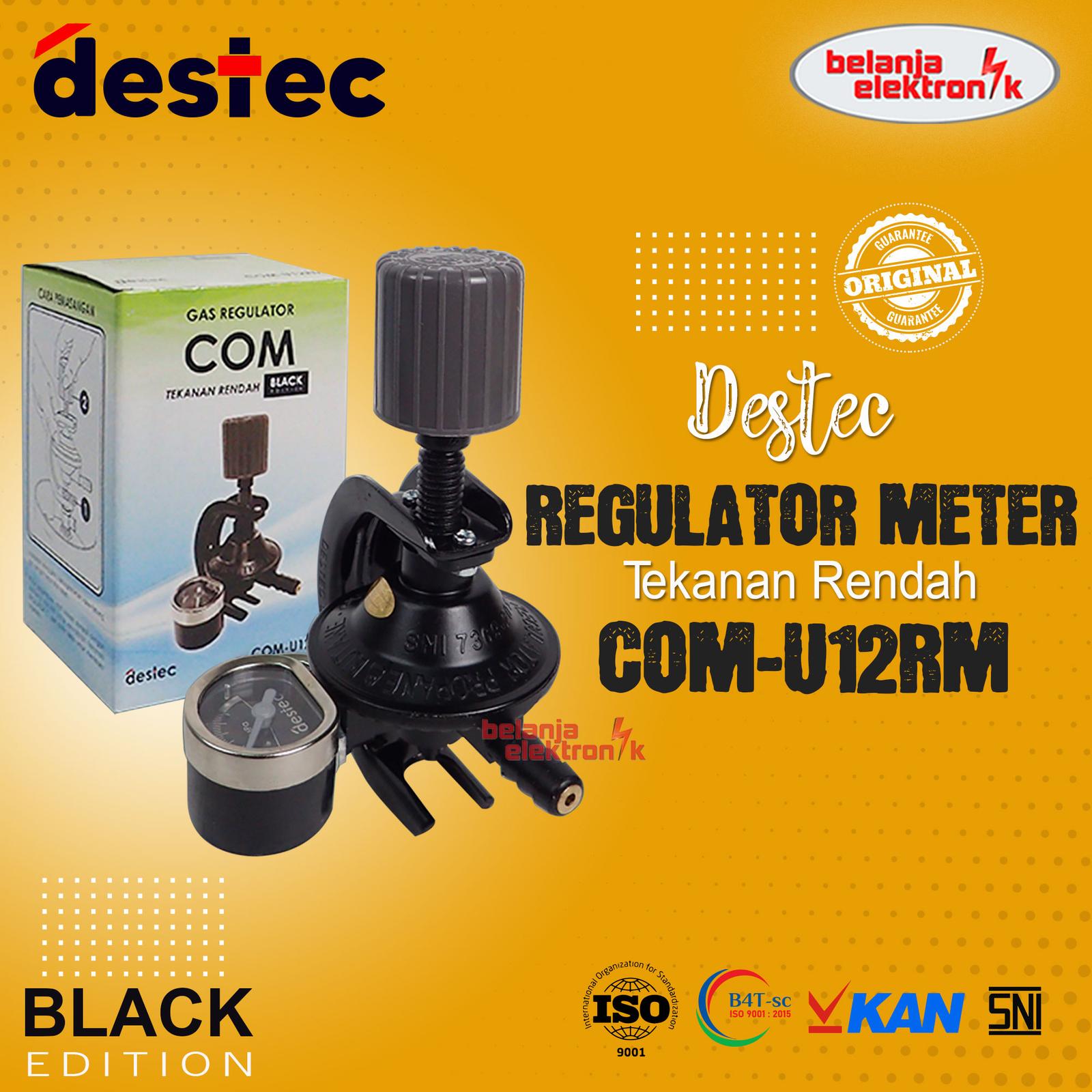 Solusi tepat pengaturan aliran gas LPG 3kg & 12kg Anda. Destec COM U12RM menghadirkan keamanan dan kepraktisan terbaik untuk dapur rumah tangga modern. Dilengkapi dengan meteran inovatif, regulator ini memantau laju aliran gas secara real-time, memberikan kontrol penuh atas penggunaan gas Anda. Dibangun dengan desain yang presisi dan material berkualitas tinggi untuk mencegah kebocoran, menjamin keselamatan keluarga Anda. Pemasangannya sangat mudah dan cepat dengan sistem penguncian snap-on yang aman.