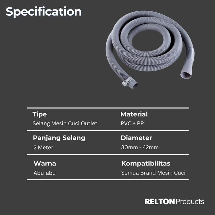 Tingkatkan efisiensi dan keandalan mesin cuci Anda dengan RELTON Selang Outlet. Dirancang khusus untuk memastikan proses pembuangan air berjalan lancar tanpa hambatan, selang ini merupakan komponen penting untuk menjaga kinerja mesin cuci Anda tetap optimal.
