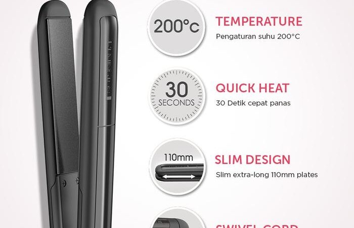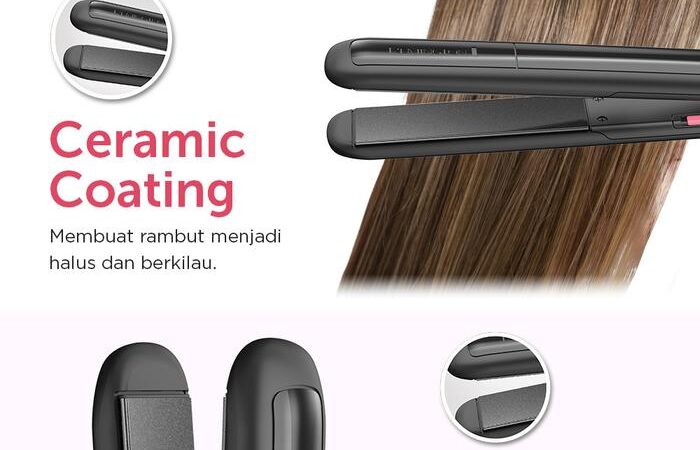 • Ceramic Coating: Lapisan keramik pada plat catokan yang memastikan panas tersebar merata, mengurangi titik panas yang dapat merusak rambut, dan membantu menghasilkan hasil yang halus dan berkilau.