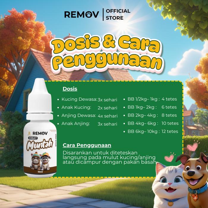 | Untuk Berbagai Kondisi | Mengatasi muntah akibat infeksi pencernaan, stres, maupun mabuk perjalanan. Ideal untuk anjing dan kucing dari usia 1 bulan. |