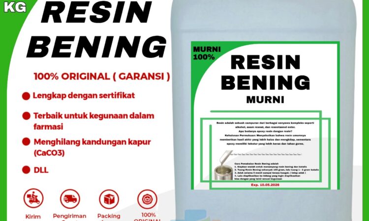 Resin bening adalah senyawa kimia yang mengeras menjadi material transparan dan sangat jernih. Material serbaguna ini menjadi pilihan utama untuk beragam aplikasi, mulai dari pembuatan perhiasan, dekorasi interior, kerajinan tangan (craft), hingga laminasi fiberglass pada industri otomotif dan kapal.