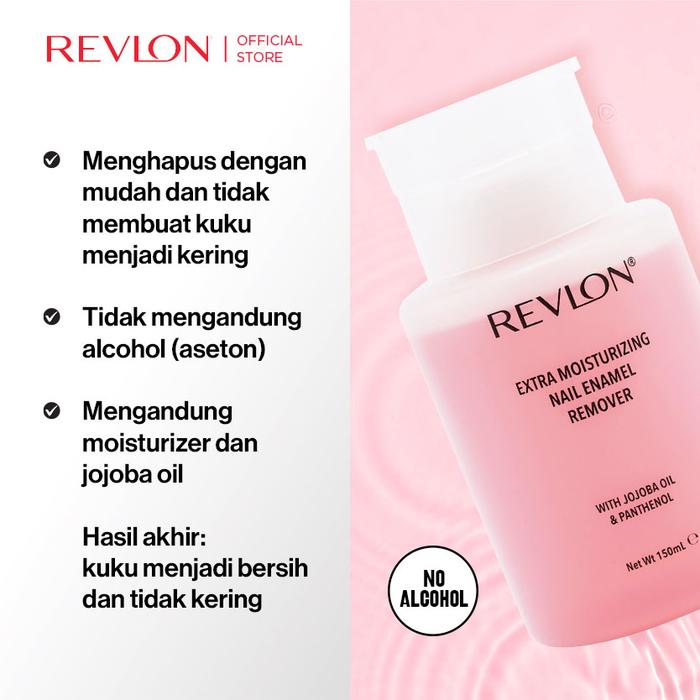 Wujudkan kuku bersih dan selalu lembap tanpa risiko kering. Revlon Nail Enamel Remover adalah solusi penghapus cat kuku canggih yang diformulasikan khusus tanpa bahan aseton yang keras. Diperkaya dengan Moisturizer dan Jojoba Oil, formula ini tidak hanya membersihkan sisa kutek dengan sangat efektif tetapi juga sekaligus memberikan nutrisi dan kelembapan ekstra pada kuku dan kutikula. Dapatkan hasil kuku yang bersih maksimal, lebih sehat, dan terhindar dari kekeringan serta warna kekuningan.