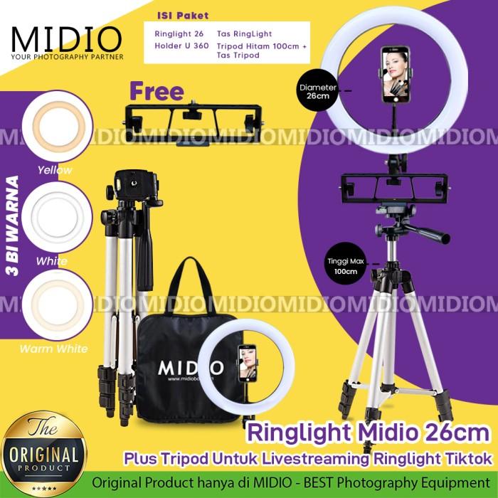 | Diameter 26cm ideal untuk wajah dan produk kecil | Daya: 10W | 1x Ringlight Midio 26cm (USB) |