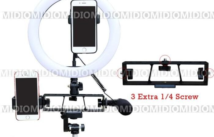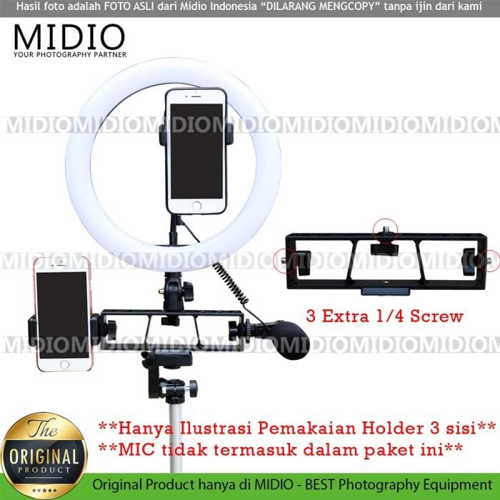 - Socket 3 Sisi: Aksesori bonus yang menambahkan tiga port tambahan pada ringlight, memungkinkan pemasangan mikrofon, lampu kedua, atau penjepit HP lainnya secara bersamaan.