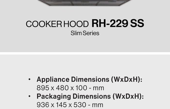 Tingkatkan kualitas udara di dapur Anda dengan Rinnai RH-229SS, cooker hood berdesain slim elegan berukuran 90cm yang terbuat dari material Stainless Steel tahan lama. Produk ini didukung garansi resmi Rinnai untuk jaminan keaslian dan kepuasan Anda.