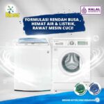 | Rendah Busa & Non-Residu | Formulasi khusus yang tidak meninggalkan sisa pada pakaian dan merawat mesin cuci bukaan depan agar tetap awet. |