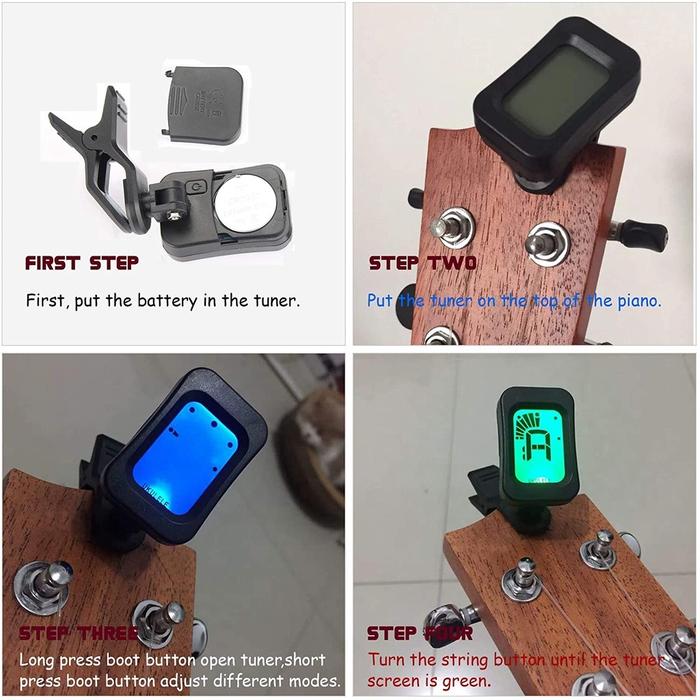 | Tuner Gitar | 1 pc | Tuner clip-on kromatik dengan sensor getar sensitif dan layar LED terang. Untuk gitar, bass, ukulele, & biola. |