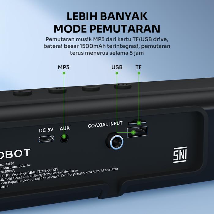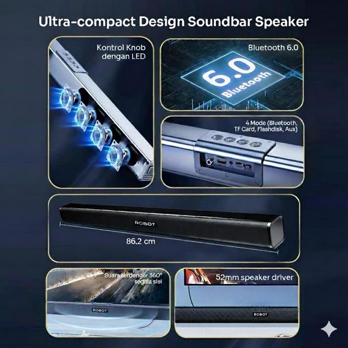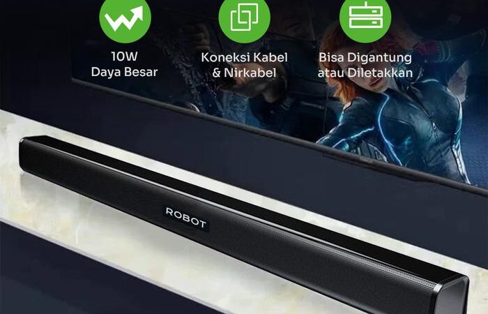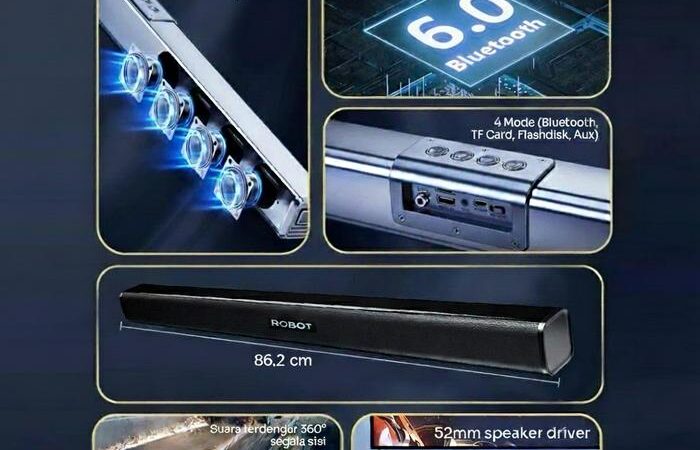 Nikmati kualitas suara luar biasa dengan Robot Soundbar RB590. Dirancang khusus untuk TV dan perangkat Anda, speaker ini menghadirkan pengalaman seperti home theater dengan desain ultra-compact yang hemat tempat.