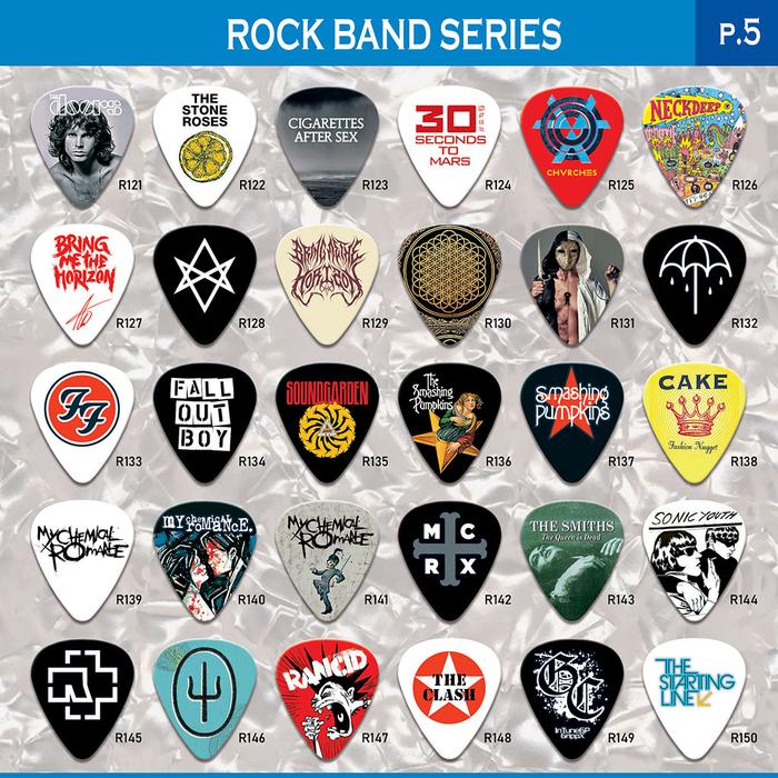 Dapatkan pick gitar Rock Band Series dengan desain eksklusif dan kualitas premium untuk performa terbaik. Setiap pick dicetak dengan gambar high-resolution pada kedua sisi, dilaminasi anti air, dan memiliki lapisan pelindung anti gores untuk menjaga gambar tetap tajam dan awet.
