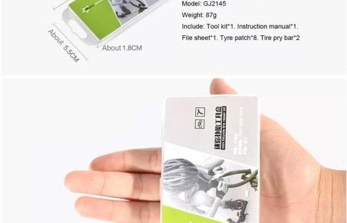 | Isi Paket | 1 Tool Kit, 1 Instruksi Manual, 1 Metal Rub Sheet, 1 Lem Karet, 8 Patch Tambal Ban, 2 Tire Lever |
