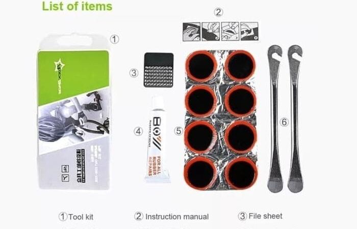 Perlengkapan di dalamnya sangat lengkap. Dua tire lever yang kokoh terbuat dari logam memudahkan Anda membuka ban dari velg dengan aman tanpa merusaknya. Delapan patch karet berkualitas tinggi dan lem perekat khusus memberikan hasil tambalan yang kuat dan tahan lama. Metal rub sheet disertakan untuk memastikan permukaan ban yang akan ditambal bersih dan kasar, sehingga daya rekat lem menjadi maksimal.