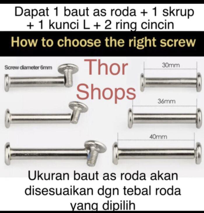 | Komponen per Set | 1 roda, 2 ring cincin, 1 baut as skrup (6 mm), 1 kunci L (beli 4 roda dapat 2 kunci L) |