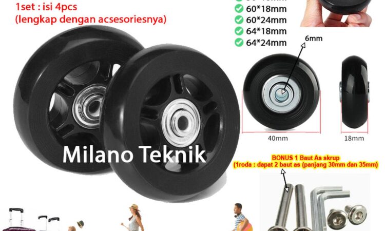 Tips Pemilihan: Ukur diameter dan ketebalan roda koper Anda yang lama untuk memastikan kecocokan ukuran. Setiap unit roda sudah dilengkapi dengan dua pilihan ukuran baut AS, memberikan fleksibilitas dan kemudahan selama proses instalasi.