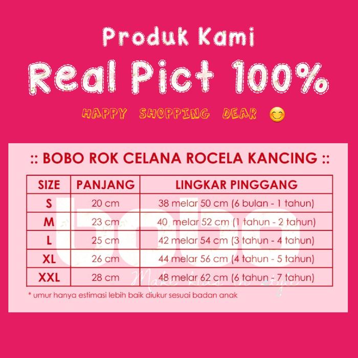 - Kategori umur hanya sebagai perkiraan. Selalu perhatikan detail ukuran untuk hasil yang pas.