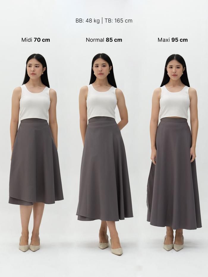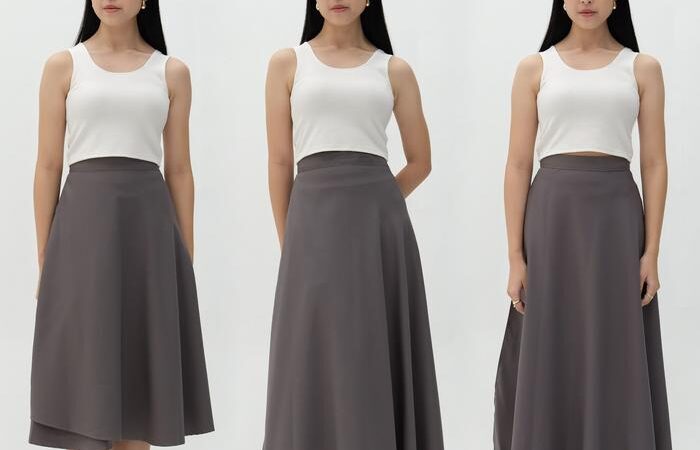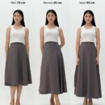 - A-Line: Siluet rok yang bentuknya menyerupai huruf ‘A’, ramping di bagian pinggang dan melebar ke bawah.