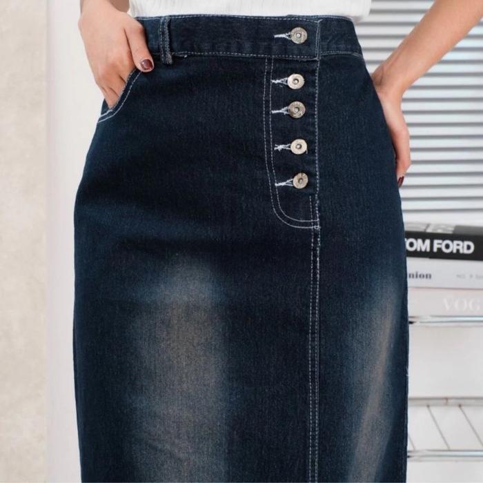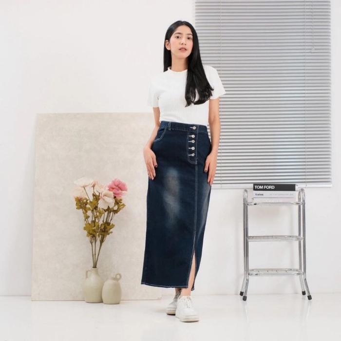 Tampil percaya diri dengan Rok Jeans Korean Style yang menjadi tren fashion kekinian. Terbuat dari bahan Denim Strecht berkualitas tinggi yang tebal, nyaman, dan memiliki elastisitas sempurna, memberikan fleksibilitas maksimal untuk berbagai aktivitas. Desain kancing depan dengan belah samping menambah kesan stylish dan memudahkan dalam pemakaian.