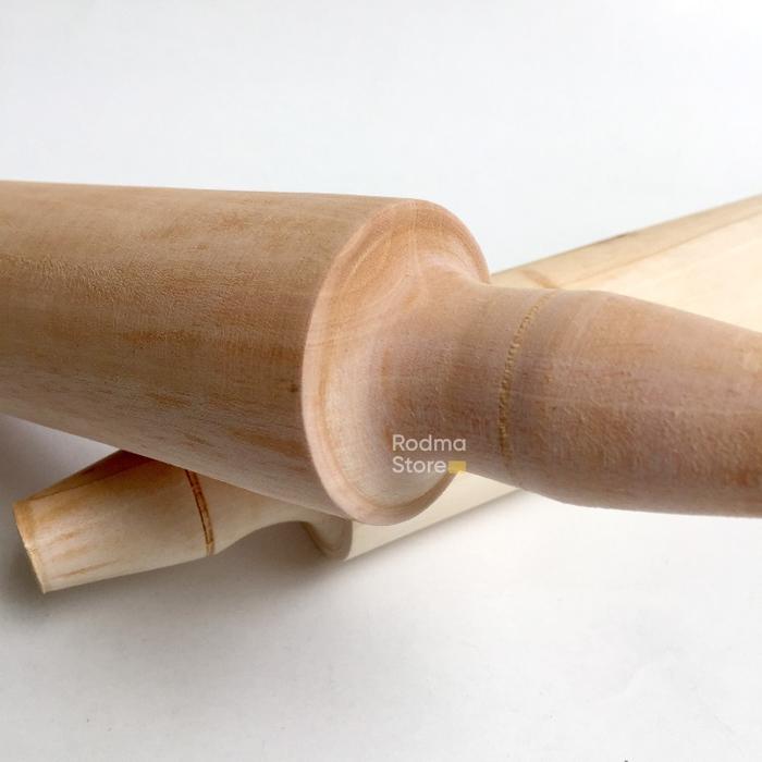 Permukaan kayunya yang halus secara alami memiliki sifat anti lengket, memastikan adonan tidak menempel sehingga proses penggilingan menjadi lebih mudah dan hasilnya lebih maksimal. Pegangan yang ergonomis memberikan kenyamanan dan kontrol yang penuh selama penggunaan.