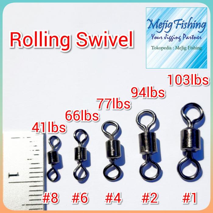 - Rolling Swivel Kili Kili Pancing: Aksesori pancing berbentuk lingkaran dengan bagian berputar (swivel) untuk mengurangi puntiran senar saat memancing.