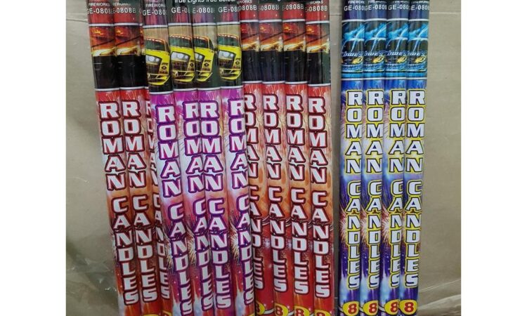 - Roman Candle: Jenis kembang api yang berbentuk batang dan menyemburkan bola api (shot) berwarna-warni secara berurutan dari satu tabung.
