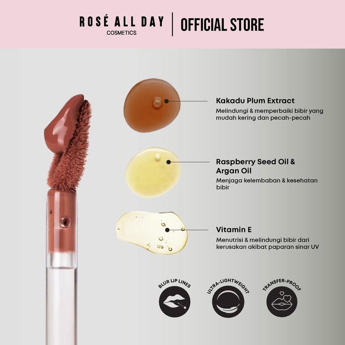 Wujudkan tampilan bibir velvet yang sempurna dengan Rosé All Day Lip Mousse. Formula super ringannya memberikan coverage tinggi dengan finish suede yang halus dan tidak membuat bibir kering. Terbukti transfer-proof dan tahan lama, memberikan noda alami yang rata sepanjang hari. Tersedia dalam 7 shade hyper-pigmented yang dirancang khusus untuk memberikan efek blurring instan, menyamarkan garis-garis halus dan warna bibir yang gelap hanya dalam satu usapan.