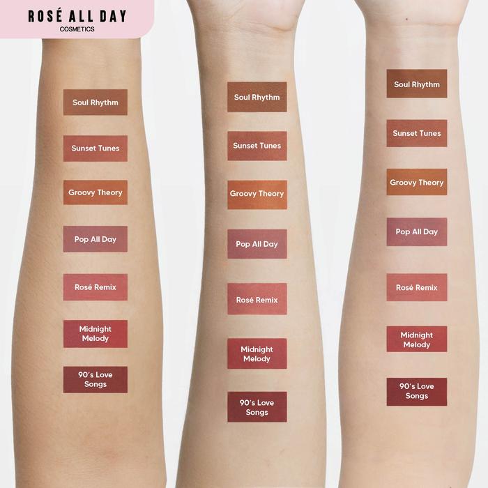 | Shade Tersedia | Groovy Theory (Soft Brick Chestnut), Pop All Day (Soft Mauvey Rose Nude), Rosé Remix (Warm Blushed Pink Nude), Soul Rhythm (Soft Mid-Tone Brown Nude), 90’s Love Songs (Deep Berry Plum), Sunset Tunes (Soft Brown Pink Nude), Midnight Melody (Rich Berry Pink) |