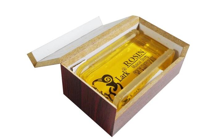 - Rosin: Getah pohon yang diolah menjadi padatan, berfungsi meningkatkan gesekan antara bow dan senar biola agar menghasilkan suara optimal.