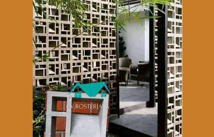 - Roster: Elemen bangunan berbahan beton atau keramik dengan lubang-lubang ventilasi, berfungsi untuk sirkulasi udara dan estetika.