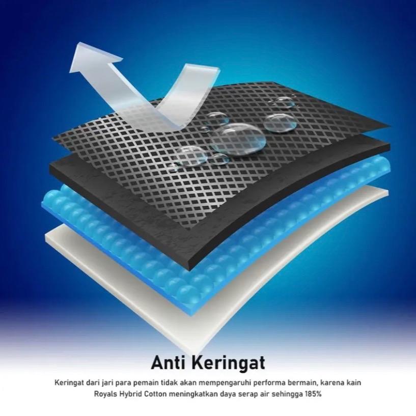- Royals Hybrid Cotton: Kombinasi bahan katun premium dengan teknologi khusus untuk kenyamanan dan responsivitas tinggi.