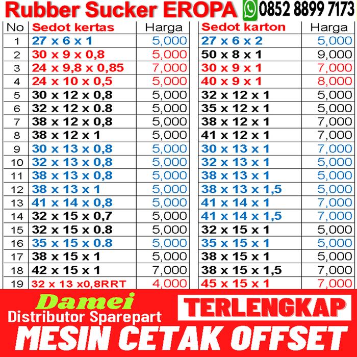 | Rubber Sucker EROPA | Tersedia berbagai ukuran lain |