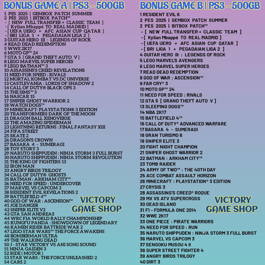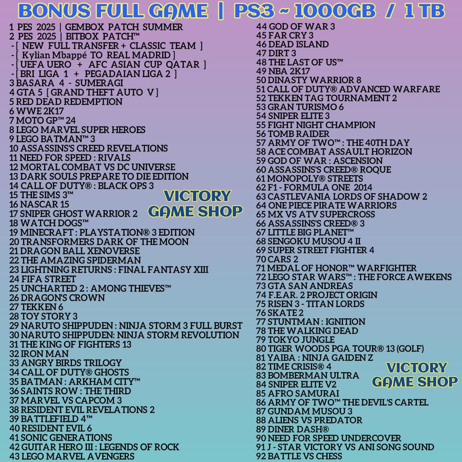 | Sistem | Terinstal HEN CFW (Bisa main offline/online aman) |