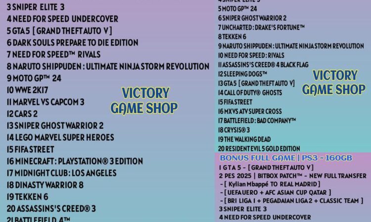 - Unit PS3 Super Slim (Warna random, sesuai stok)