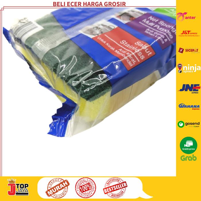 | Dua Sisi Berbeda | Sisi hijau (kasar) untuk menggosok noda membandel; sisi kuning (halus) untuk permukaan yang sensitif. |