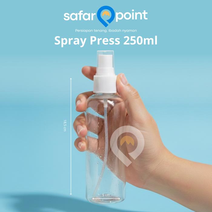 Lengkapi perjalanan ibadah Haji & Umroh Anda dengan solusi berwudhu yang praktis dan higienis. Botol spray Safar Point dirancang khusus untuk memudahkan jamaah dalam membawa air bersih kapan saja dan di mana saja. Dengan kapasitas 250ml, botol ini sangat ideal untuk menyimpan air wudhu, air zam-zam, parfum non-alkohol, atau cairan penyejuk tubuh lainnya selama perjalanan ibadah.