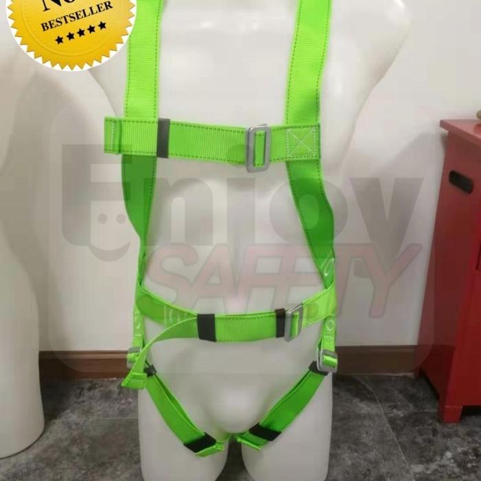 - Full Body Harness: Sabuk pengaman keselamatan yang dirancang untuk menahan seluruh tubuh pengguna (dada, pundak, paha) untuk mencegah jatuh bebas dan menyebarkan gaya hentakan saat terjadi jatuh.