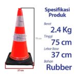 Dibuat dari material PVC rubber pilihan yang sangat tebal, traffic cone ini menjamin ketahanan terhadap cuaca ekstrem, sinar UV, dan suhu panas. Konstruksinya yang solid dan berat membuatnya sangat stabil, bahkan saat terkena angin kencang atau benturan tidak sengaja, sehingga tidak mudah terguling.