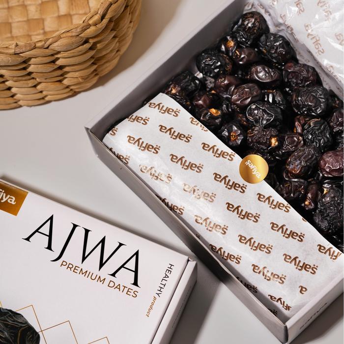 Kurma Ajwa Safiya adalah pilihan premium dengan kualitas terjamin. Dipilih secara khusus, kurma ini memiliki daging yang tebal, empuk, dan tidak mudah hancur. Berwarna cokelat tua kehitaman khas, teksturnya padat dan pekat, tidak lembek seperti kurma biasa. Rasanya unik; tidak terlalu manis namun sangat lezat, dengan aftertaste yang nikmat. Keunggulan rasa yang tidak terlalu manis ini membuatnya sangat aman dan cocok dikonsumsi oleh penderita diabetes atau Anda yang lebih menyukai rasa manis yang subtle.