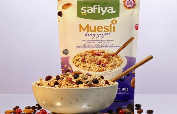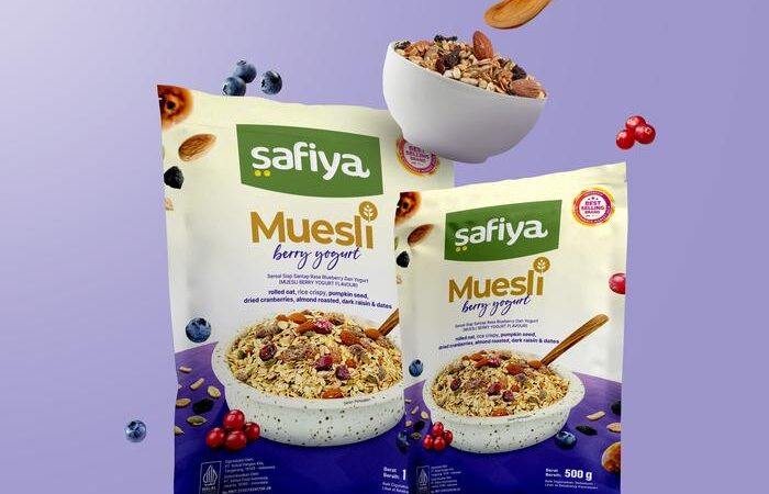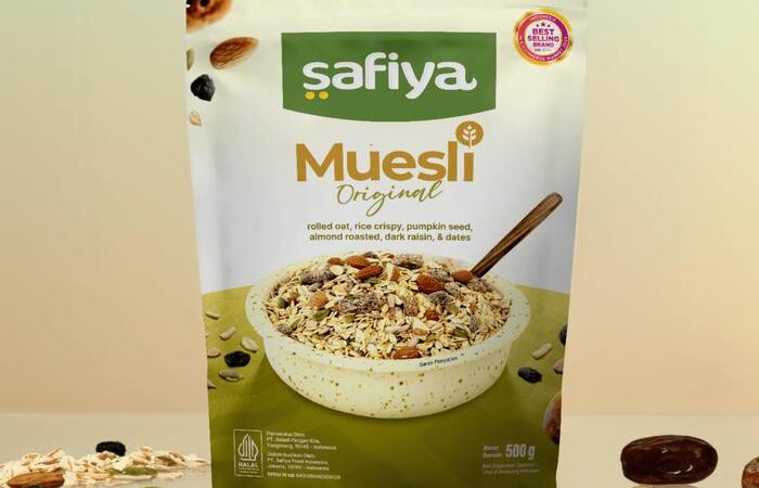 Rasakan pengalaman sarapan sehat ala Swiss dengan Safiya Muesli. Terbuat dari bahan-bahan pilihan seperti rolled oat, kacang almond utuh, biji-bijian, dan aneka buah kering yang lezat. Produk kami tinggi serat, rendah gula, dan tanpa bahan pengawet, menjadikannya pilihan sempurna untuk memulai hari, camilan sehat, atau topping yogurt yang renyah. Nikmati kualitas premium dan cita rasa autentik dalam setiap kemasan.