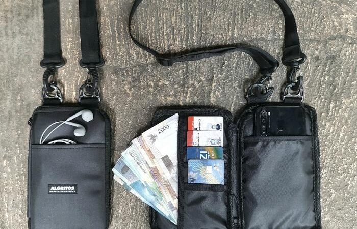 | Model Penggunaan | Tas selempang atau tas gantung leher |