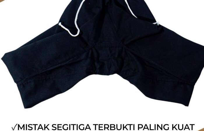 | Desain Celana | Kolor karet dengan tali, dijahit silang (mistak) untuk mencegah robek, sangat fleksibel untuk gerakan silat |