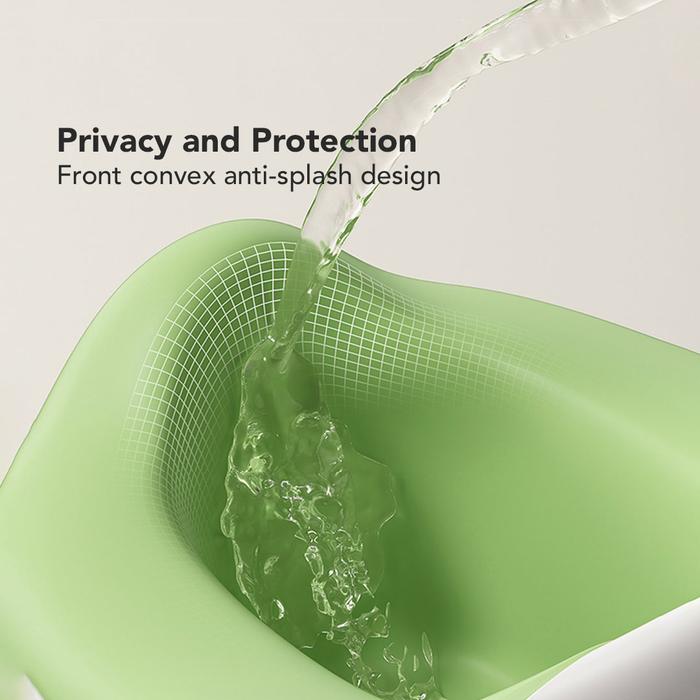 Desainnya ergonomis dengan sandaran punggung untuk kenyamanan maksimal. Fitur unggulannya adalah bagian depan yang lebih menonjol, efektif mencegah percikan air seni keluar. Dilengkapi baki dengan kedalaman 10 cm dan desain anti-slip untuk keamanan ekstra. Gunakan kantong plastik di dalamnya untuk memudahkan pembuangan dan menjaga kebersihan.