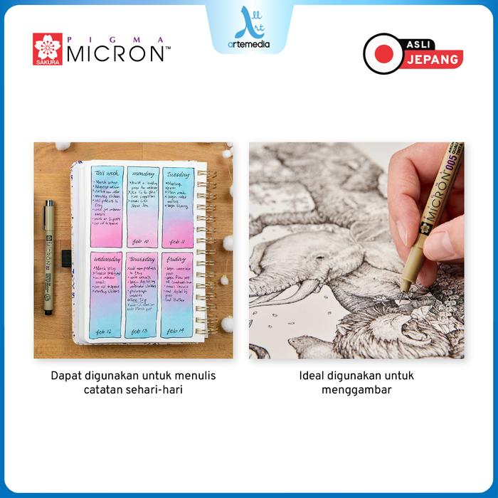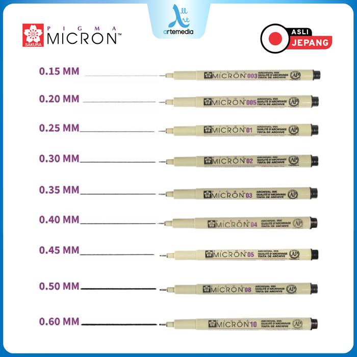 Raih presisi dan kualitas terbaik dengan Drawing Pen Sakura Pigma Micron 01. Sebagai drawing pen paling populer di dunia, Pigma Micron menjamin performa tanpa kompromi untuk semua kebutuhan menggambar, sketching, outlining, dan detailing Anda.