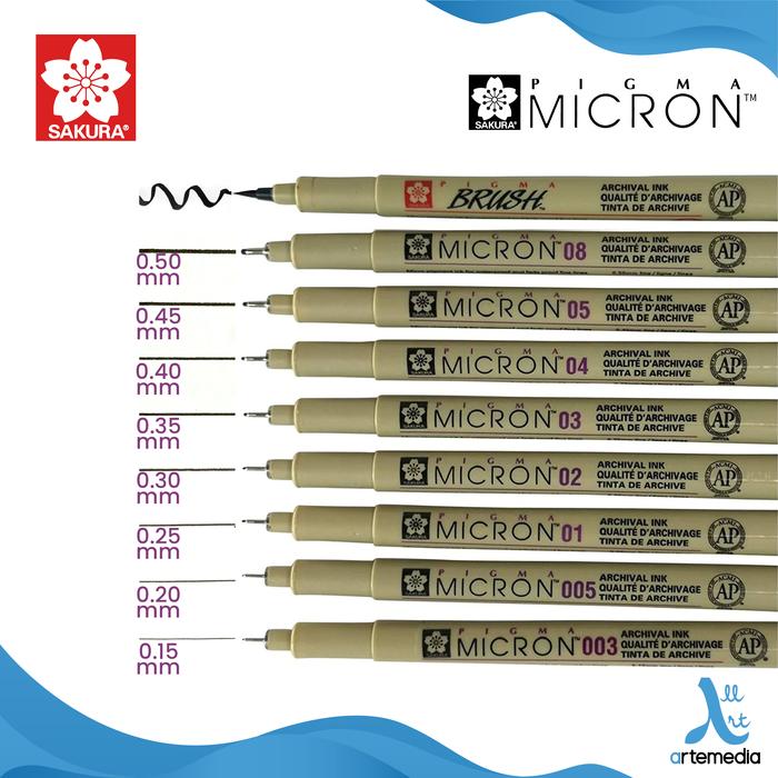 Wujudkan detail paling sempurna dalam setiap karya seni, sketsa, arsitektur, atau journaling Anda dengan set lengkap Drawing Pen Sakura Pigma Micron. Sebagai alat tulis seni paling tepercaya di dunia, fineliner ini menjamin performa tanpa kompromi. Tinta Archival berkualitas tinggi menjamin garis yang stabil, tidak pernah blobor, dan tidak mudah luntur. Hasilnya bersih, presisi, dan tahan lama selama puluhan tahun.