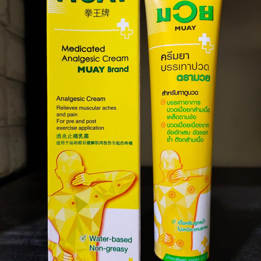 Muay Cream adalah salep import Thailand yang telah terbukti efektif mengatasi masalah persendian dan otot. Formulasi khususnya membantu meredakan keseleo, pegal linu, urat turun, bengkak, serta kekakuan otot dalam waktu singkat.