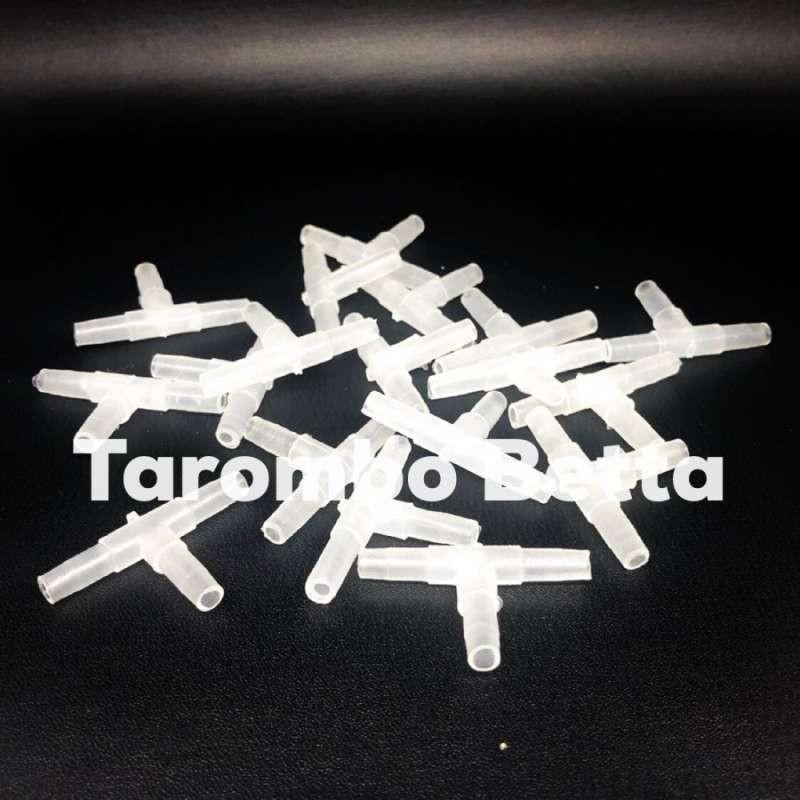 - Sambungan T (Tee): Konektor berbentuk huruf “T” untuk membagi aliran selang menjadi dua arah.