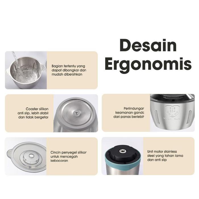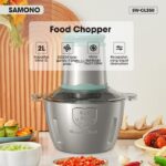 Wujudkan masakan terbaik untuk keluarga dengan Samono SW-CL350, penggiling dan chopper elektrik berkapasitas besar. Dengan 4 mata pisau stainless steel berkualitas tinggi dan wadah food grade 2 liter, proses mengolah daging, bumbu, atau bahan makanan lainnya menjadi lebih halus, cepat, dan higienis. Dilengkapi teknologi overheat protection yang mematikan mesin secara otomatis saat suhu terlalu panas untuk menjamin keamanan dan daya tahan produk.