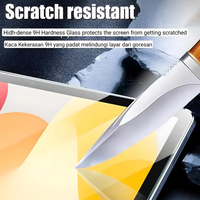 Kekerasan 9HTahan gores hingga level kekerasan 9H, melindungi layar dari benda tajam seperti kunci atau pisau.