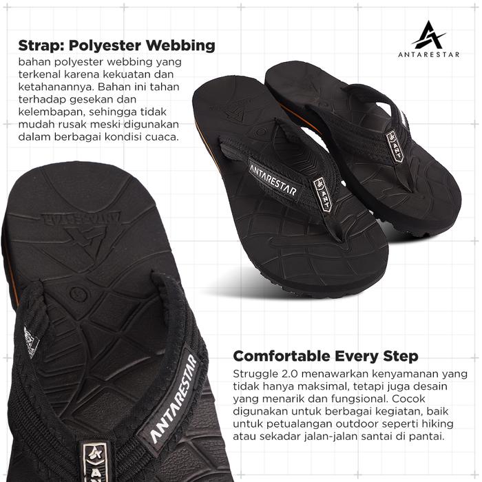 Sandal Struggle adalah sandal jepit serbaguna yang dirancang khusus untuk berbagai aktivitas outdoor maupun sehari-hari. Dilengkapi dengan insole empuk dan outsole lentur namun kokoh, sandal ini memberikan kenyamanan maksimal sekaligus ketahanan di segala medan. Desainnya yang stylish membuatnya cocok untuk kegiatan trekking, camping, atau sekadar dipakai santai.